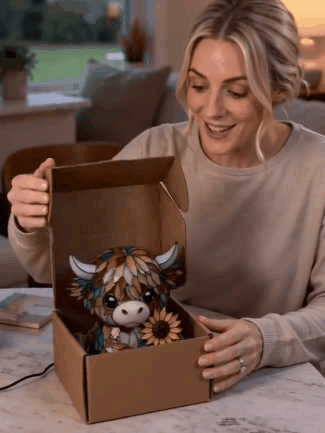 Not just a night light — this little Highland cow holding a glowing sunflower quietly transforms your space into a cozy, comforting retreat.