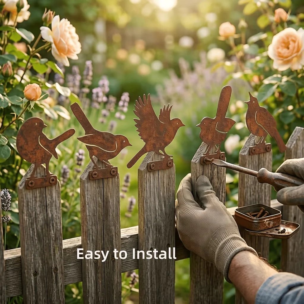 🐦 Breathe life and whimsical charm into your outdoor spaces with our 5-Piece Lifelike Rusty Metal Bird Silhouettes.