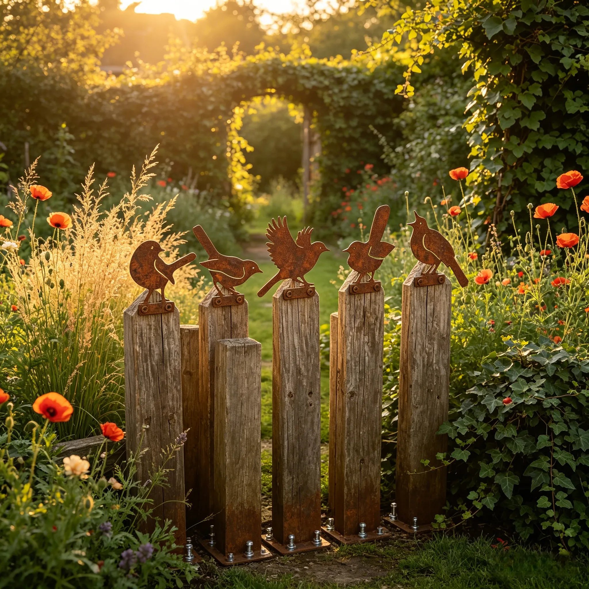 Versatility is at the heart of this design. Their flat-bottom mounting plates make them perfect for topping wooden fences, securing to tree branches, decorating raised planter beds, or adorning balcony rails. Wherever you need a touch of nature, these birds are ready to perch.